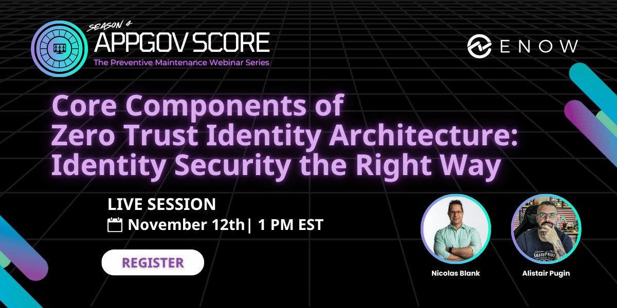 Join ENow and MVPs Alistair Pugin, and Nicolas Blank, on November 12th for a live Application Governance session on applying Zero Trust principles to identity architecture.