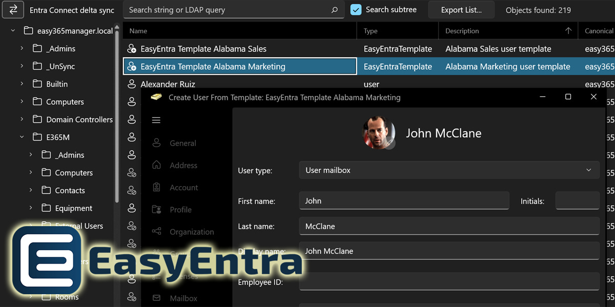 EasyEntra Virtual User Templates change that from day one: