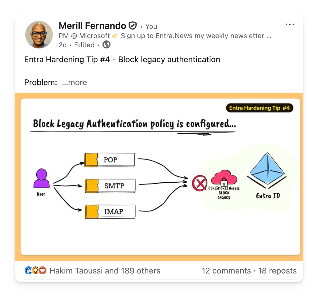 Don’t forget to check out this week’s Entra Chat with Sandra Saluti who shared quite a few ID Governance gems and best practices and some lively discussions on LinkedIn and X on the topic.