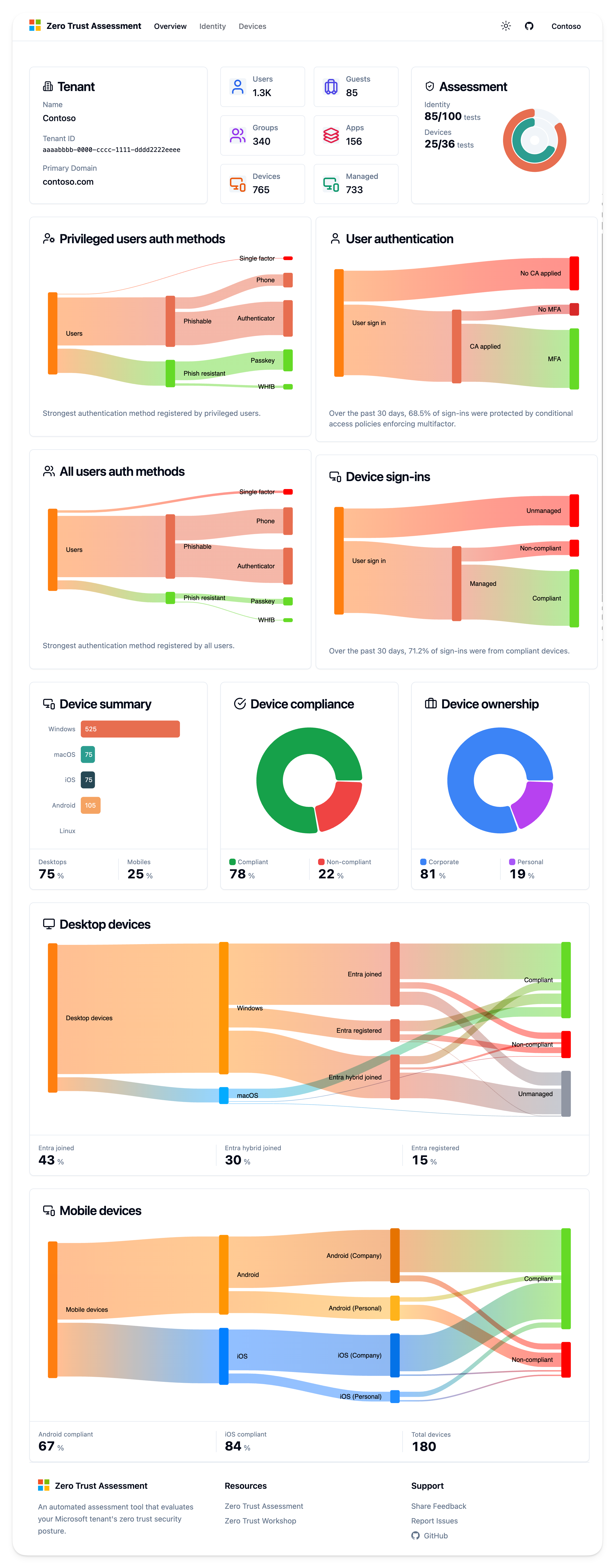 Sample report generated by the Zero Trust Assessment tool. Try aka.ms/zerotrust/demo for an interactive demo.