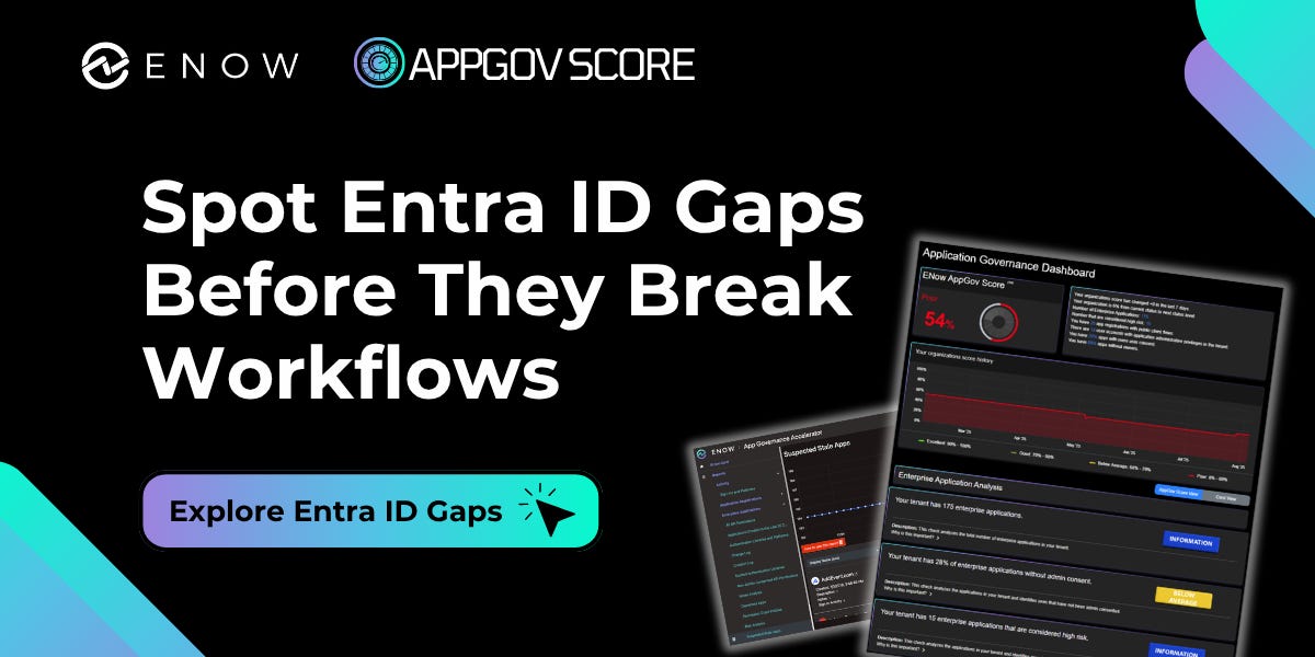 ENow App Governance Accelerator closes these gaps by highlighting expiring credentials, surfacing permission risks, and identifying ownership gaps before they disrupt operations. New Standard Tier pricing makes it accessible for organizations under 10,000 users, typically $3,500–$9,500 annually.