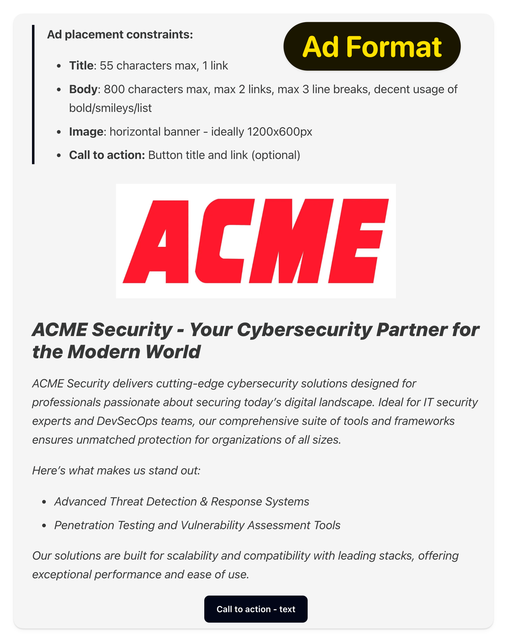 Newsletter Ad Placement Your brand will be prominently featured in the email blast for the podcast episode reaching 15,000 inboxes with a dedicated ad spot linking directly to your offer.